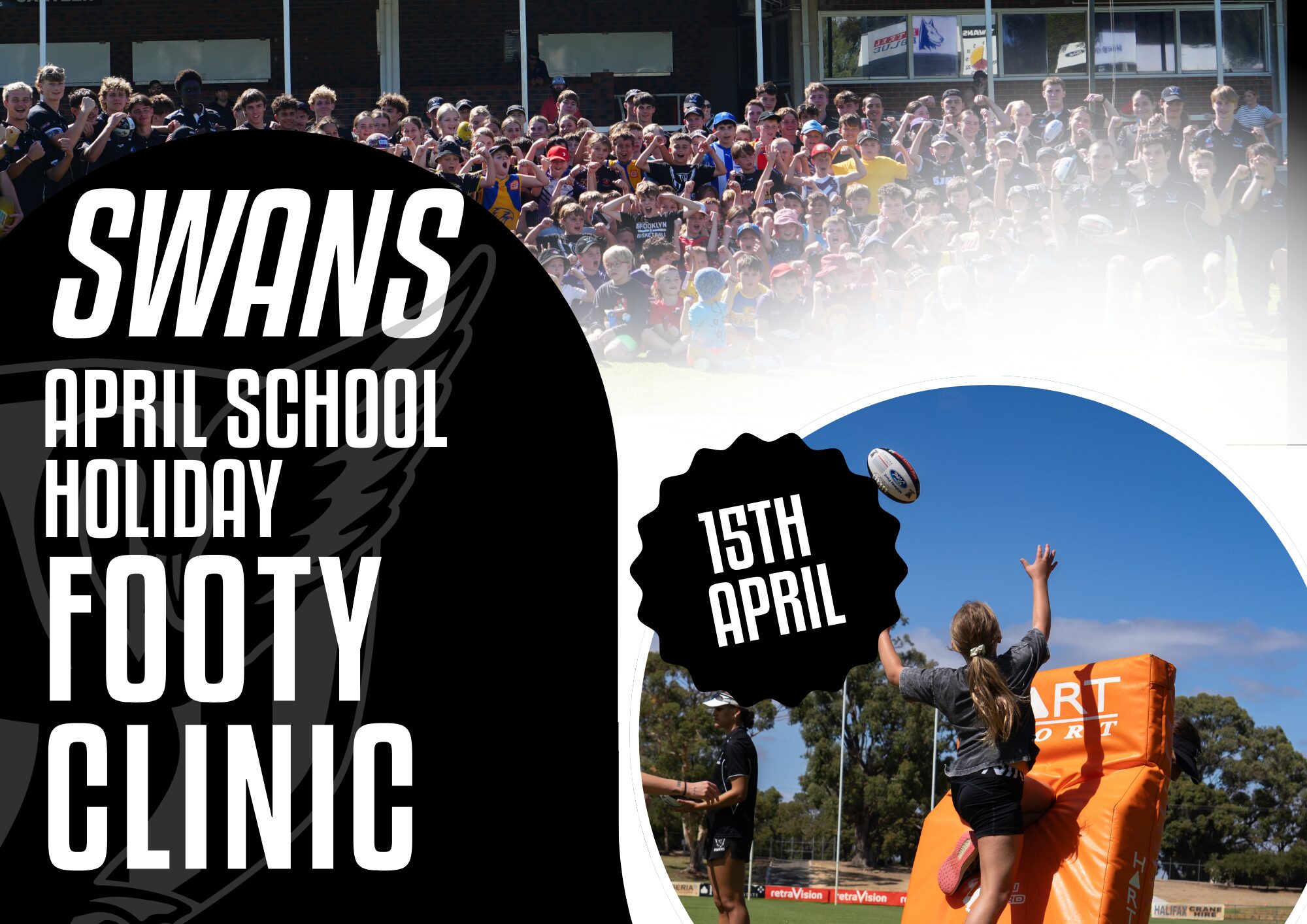 Swans are inviting all boys and girls from Pre Primary to Year 6 to our School Holiday Clinic on Wednesday 15 April at Steel Blue Oval (Bassendean), running from 10am to 2pm.